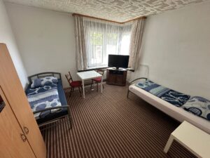 Unsere Unterkunft „Am See“ bietet Monteurzimmer für bis zu 25 Personen ab 22€ pro Person die Nacht. Bei größeren Gruppen und längeren Mietzeiträumen verhandeln wir gerne auch Sonderkonditionen. Die Wohnungen sind gemütlich eingerichtet, mit ausgestatteter Küche für Selbstbewirtschaftung und privaten Badezimmern mit WC und Dusche. Es gibt Einzel-, Doppel- und Dreibettzimmer, jeweils mit einzelnstehenden Betten.